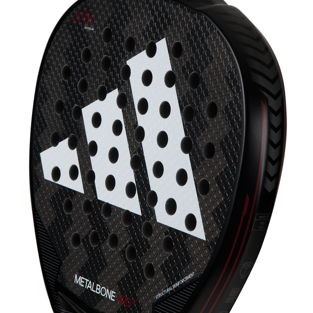 Ale Galán's racket surpasses all limits. Power, control, and technology reach unimaginable levels. The METALBONE HRD+ is designed for winning hands, those that decide the outcome of points, matches and tournaments. The racket is designed for the best padel players, such as Ale Galán. It incorporates the Weight & Balance System technology, which allows you to adjust the weights and balance to adapt it to a more control style of play or to reinforce its characteristics for a more attacking game. The Octagonal Structure located in the core, together with the other materials integrate within it, the EVA High Memory rubber and the Carbon Aluminized 2 to 1 fiber, make it an extremely rigid racket. The roughness of the Spin Blade Decal on the surface of the blade provides the best effects. The Diamond Oversize shape reinforces its status as an attacking racket. WEIGHT & BALANCE SYSTEM The capacity to gather different rackets in one single handle is possible thanks to this technology. The system of removable weights located in the neck allows the player to modify the balance and the total weight of the racket and adapt its. There are a total of six screws that can adapt the racket for an attack or control style, as desired by the player. OCTAGONAL STRUCTURE Maximum rigidity comes from the interior. This technology has a tubular structure with an octagonal section in the core of the racket that gives it great consistency. Its resistance to torsion is extremely high, so the most powerful shots are guaranteed. SPIN BLADE DECAL This technology covers the face of the racket with a rough surface with a high grip capacity. The friction with the ball is total, so the effects are carried out with astonishing ease.