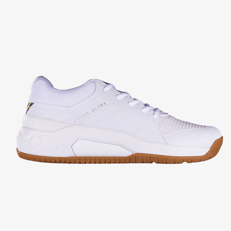 Salming Recoil Ultra, the ultimate indoor shoe for serious players. With superior lateral heel and mid foot stability, this shoe is designed to support your power moves while providing all-around comfort. The Recoil+ foam midsole offers a bouncy, energetic feel with a perfect mix of cushioning and agility. The functional lacing construction ensures a unique fit that enhances your performance. The soft materials and lines in the heel/collar provide maximum comfort. The outsole features rounded edges and a Hexagrip+ pattern that works on dirty floors, while the forefoot flex grooving ensures a natural stride. Don't settle for less - choose the Salming Recoil Ultra for the most stable, comfortable and secure indoor experience.