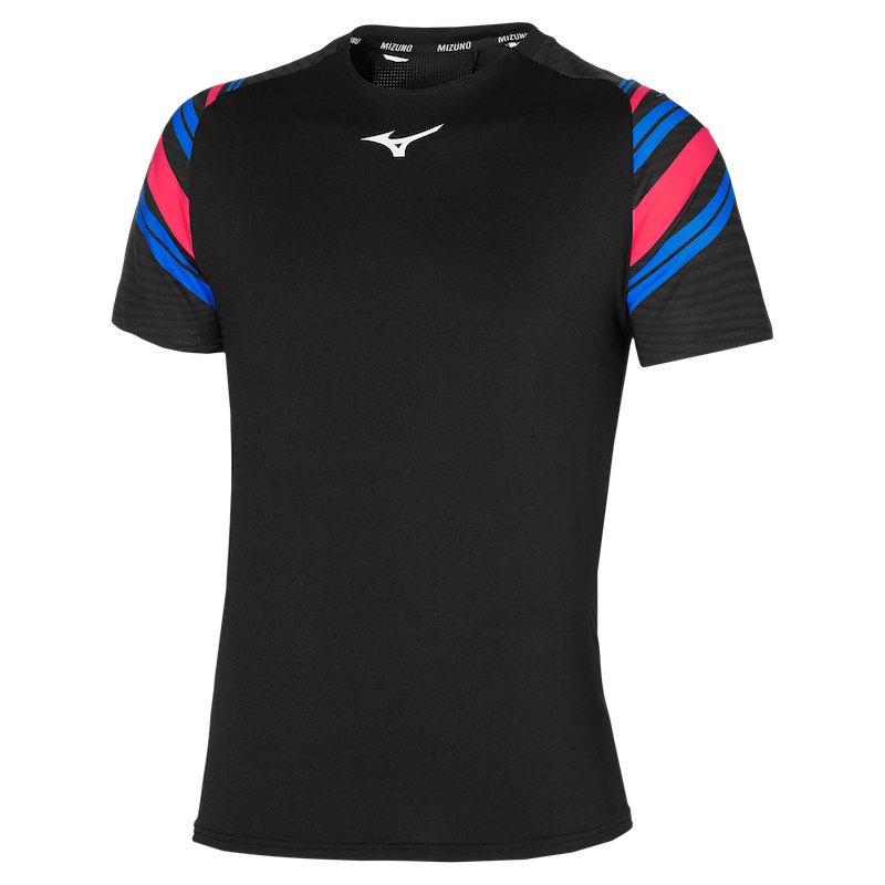 Men's Mizuno Shadow Tee. Lightweight stretchable performance material for better freedom of movement and a Kasane inspired graphic on side panels.