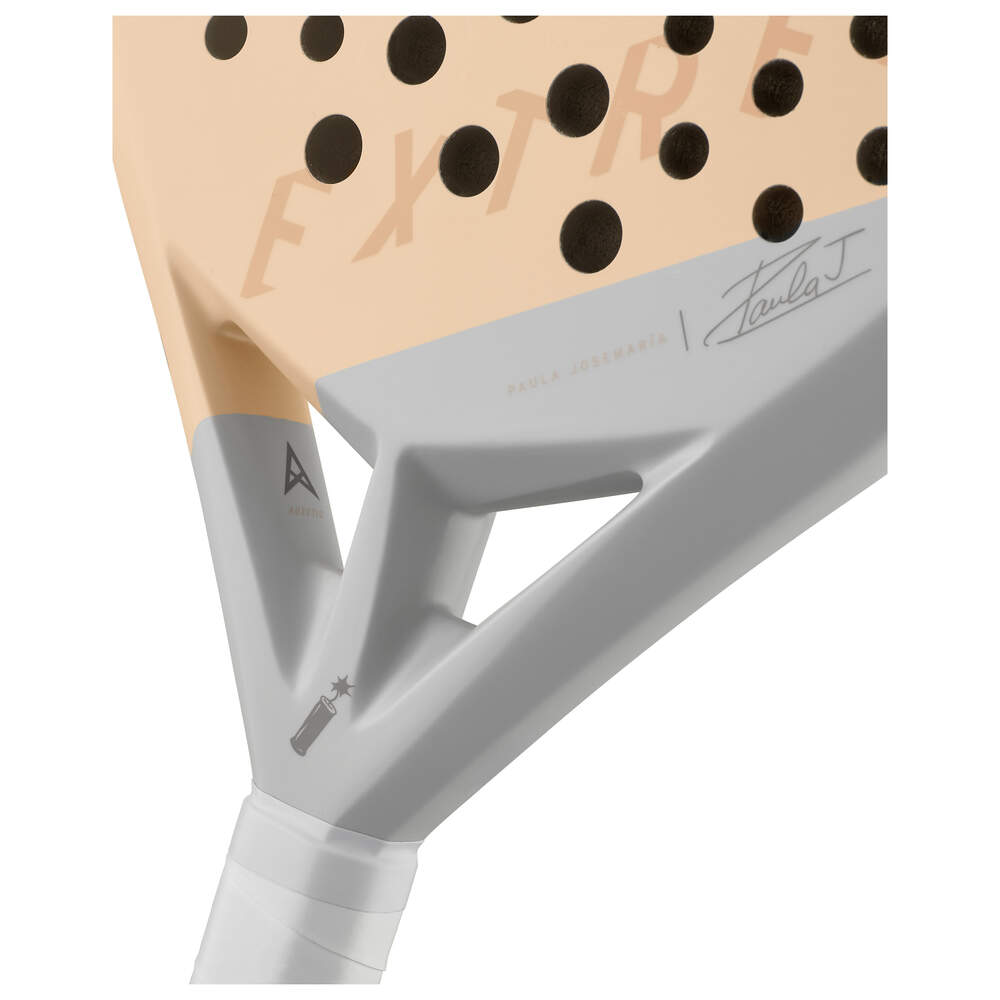 Based on the Extreme Motion model, featuring the same specs and technologies, the limited-edition EXTREME MOTION PAULA JOSEMARÍA padel racquet includes an exclusive design for world number one ‘Paula Dinamita’. Her dynamite character has been incorporated into the racquet design including it into the 3D spin pattern. As the co-designer, Paula chose the colors for this limited-edition racquet, adding to the elegant and exclusive design, which includes her signature. Made from a diamond-shaped mold, this racquet is ideal for advanced and professional players who are looking for both extreme power and maneuverability. • Limited edition co-designed by world number one Paula Josemaría • Elegant and exclusive colors chosen by Paula • Design includes Paula’s signature and ‘Paula Dinamita’ character • Made for advanced and professional players looking for power • Diamond-shaped mold • Based on Extreme Motion model, featuring same specs and technologies • Exclusively includes the Pro Spin Strips accessory, our new adhesive strips with a rough surface to generate more spin