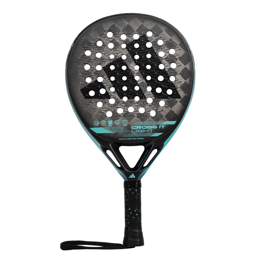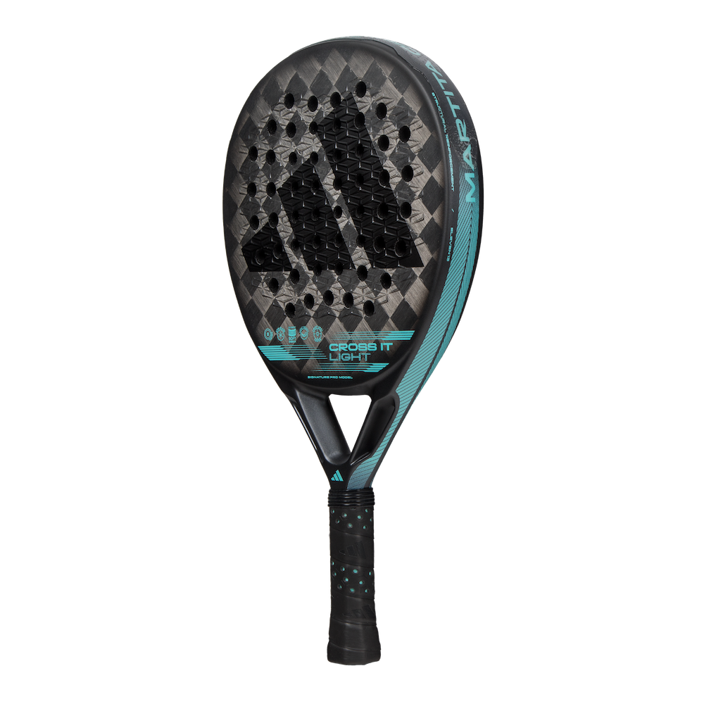 Marta Ortega's racket responds to the needs of a champion: it has all the technology at her service to offer incomparable performance. The CROSS IT LIGHT is Marta Ortega's racket. It is a racket made for professional players that incorporates the latest innovation to be taken to the padel court. In addition, it has the ease of handling offered by the lightness of the Light racquets. It is made of Carbon Aluminized 24K fiber on the surface and EVA Soft Energy rubber on the inside. This combination of materials guarantees high levels of power and the best control. Marta Ortega's racket from the new CROSS IT range combines the best innovation, lightness, and performance. The Extra Power Grip, a longer grip, moves the balance to the top of the head to improve powerful shots. Aerodynamics comes to padel through Dynamic Air Flow technology. With it, the racket reduces its resistance to the air and is more efficient on impact. For its part, the ELEVEN 13 improves durability and power thanks to a pioneering arrangement of the holes. The CROSS IT LIGHT makes the difference. DYNAMIC AIR FLOW Aerodynamics has arrived in the world of padel. This technology reduces air resistance in the neck area of the racket to gain speed in the execution of shots, especially the most powerful ones. ELEVEN 13 A new way of arranging the holes that improves the durability and power capacity of the racket. They consist of smaller holes than usual located in the central part of the head. In this way, the central part of the head gains in consistency and rigidity. EXTRA POWER GRIP The grip of the racket is longer than usual. This means that the balance of the racket is concentrated in the head, a factor that allows for more inertia and better performance on powerful shots.