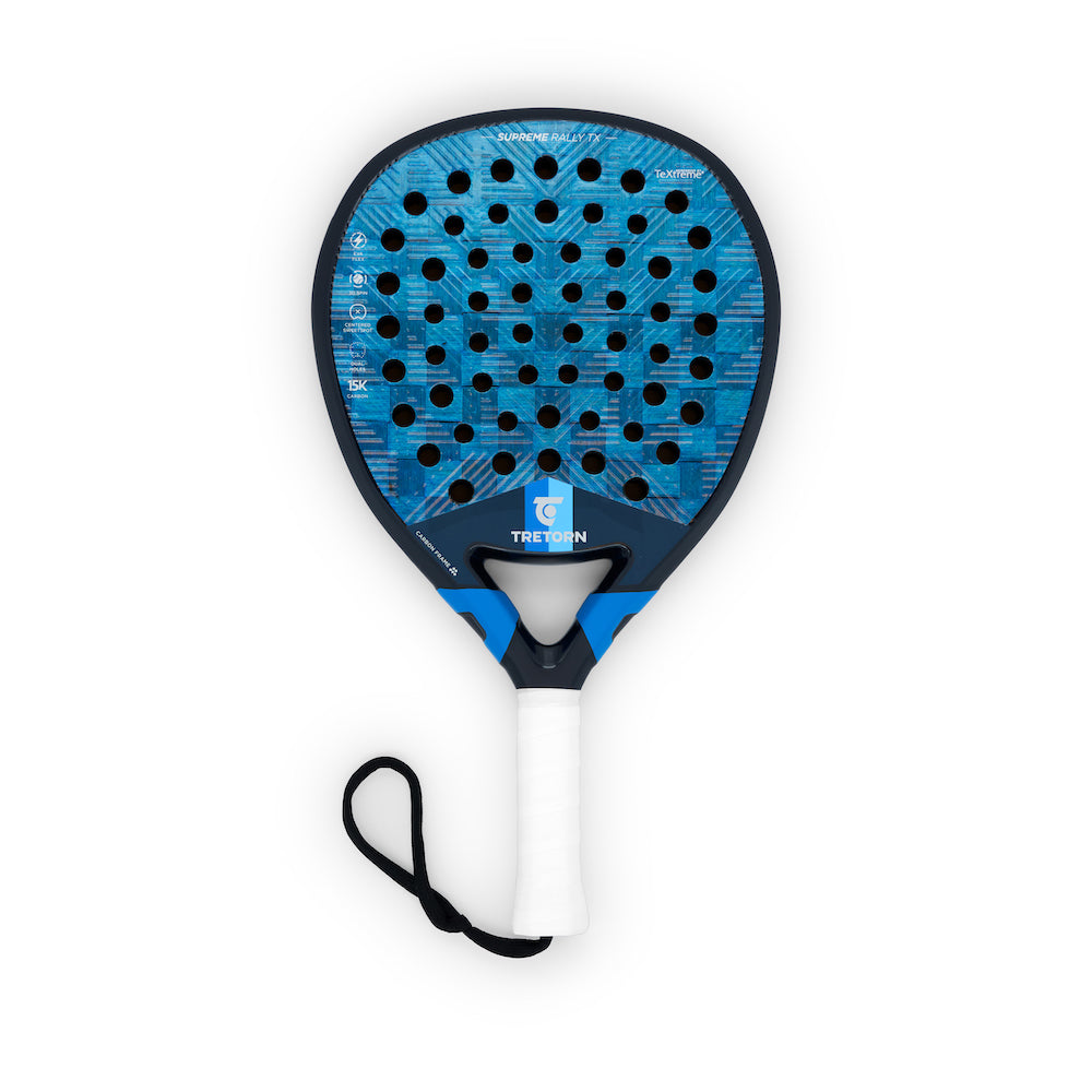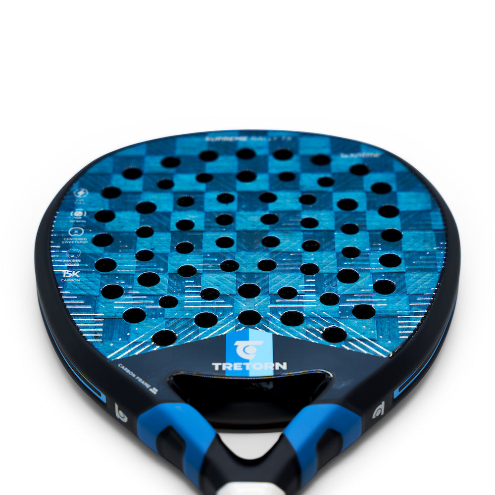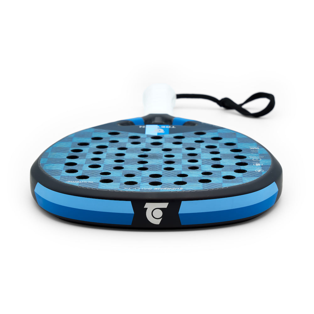 Let us introduce the SUPREME RALLY TX! Get ready to redefine your padel experience with the exceptional padel racket SUPREME RALLY TX. By combining modern technologies with outstanding craftsmanship, this racket becomes your ticket to mastering both defensive finesse and offensive strength. Made for players who control the game on the court with versatility, SUPREME RALLY TX will be your ultimate partner for total dominance. The racket is equipped with a 15K carbon fiber layer from Swedish TeXtreme®, which is a thinner, stronger, and more durable surface layer that provides a quicker response compared to traditional carbon fiber constructions. Experience a new level of speed and sensation in every shot, as TeXtreme® technology is unique. With an EVA FLEX core on the inside and a centered sweetspot, the result is a versatile racket for players who use both their defensive and offensive skills to take command on the court. Whether you make a targeted defensive lob or deliver an offensive smash, SUPREME RALLY TX provides amazing performance in every situation. The racket is also equipped with a DUAL-hole pattern that optimizes the racket's contact points, enhancing the ability for controlled shots even when hitting outside the racket's sweetspot. The result? Consistent power and precision that allow you to decide the pace of the game. Additionally, the racket features a multi-directional 3D decal, strategically designed to enhance your spin for all types of shots. Elevate your performance with SUPREME RALLY TX – where technology, versatility, and performance meet. This racket is your key to unlock a new dimension of dominance on the court.
