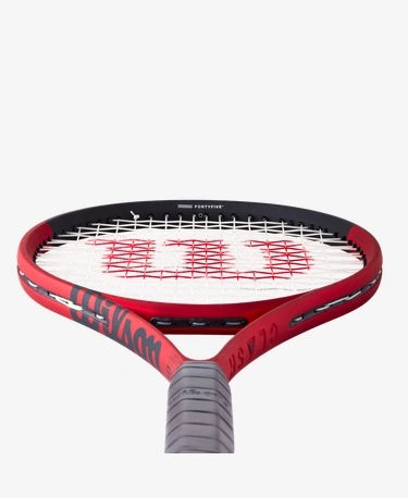 The hero model of the groundbreaking and immensely popular Clash line, the Clash 100 V2 slightly revises the recipe for more consistency, more sustainability and a more killer design. An immediate appeal for its blend of flexibility and stability for a feeling unlike any other, this racket elevates playability thanks to a revised construction at the tip of the hoop that significantly enlarges the sweet spot. Agiplast plant-based bumper, grommets and end cap incorporate sustainable components for a reduced footprint on the environment. An embossed Clash logo on the throat completes a racket that pairs dynamic looks with even more dynamic performance. - Clash Benefit: All-Around Playability - 16x19 String Pattern: Open string pattern generates greater capacity for power and spin - V2 Updates: Revised construction at tip of hoop supplies additional consistency and an enhanced sweet spot - Innovations: Groundbreaking technologies elevate playability by combining flexibility and stability for a feeling unlike any other - Reduced Environmental Footprint: End-cap, bumper composed of Agiplast, plant-based materials - Design: Red and black anodized elastic finish pops on court to match the excitement of playing with the racket