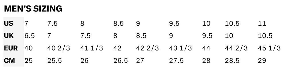 Size 41-1/3, 42, 42-2/3, 43-1/3, 44, 44-2/3, 45-1/3